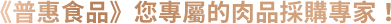 普惠食品企業(yè)股份有限公司於1985年成立至今,致力於提供臺(tái)灣食品業(yè)者來自於全球的優(yōu)質(zhì)牛肉、豬肉、雞肉、火雞肉品與海鮮,肉品批發(fā)與肉品加工分切服務(wù),最多元最專業(yè)的肉品進(jìn)口商與批發(fā)商。